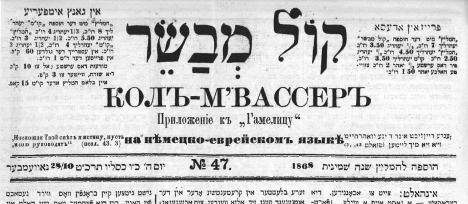 Anonymous, “etlekhe yor tsurik” (several years ago), Kol Mevaser, 47. Odessa, 1868. Trans. Annabel Gottfried Cohen.